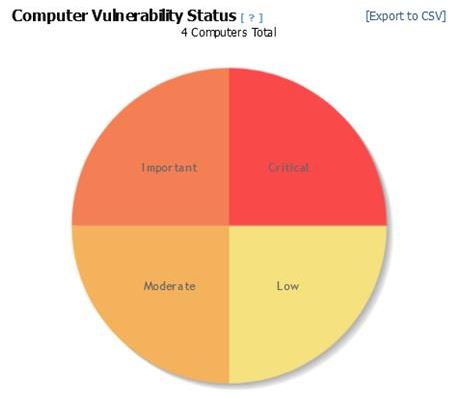 The Computer Vulnerability Status pie chart computer groups according to their most severe vulnerability.