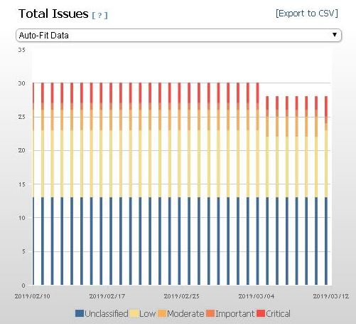 The Total Issues graph adds the number of relevant issues for each computer and then groups them by their severity rating.