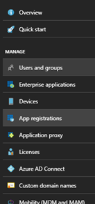 - From the menu select App Registrations.