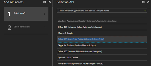 - Select Enable Access > APPLICATION PERMISSIONS:
