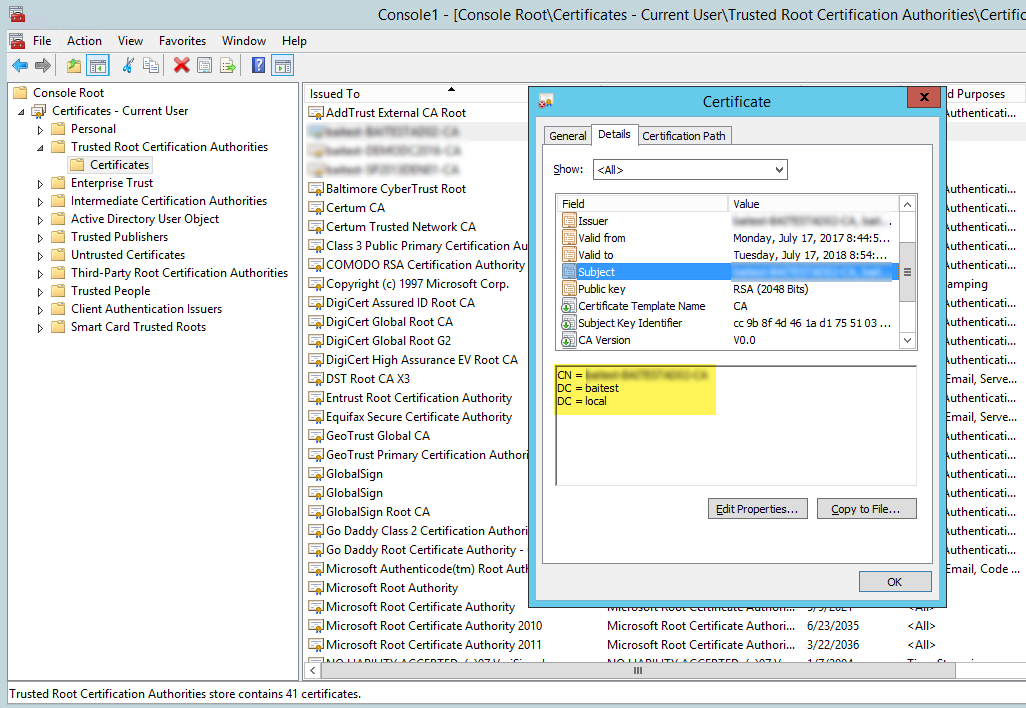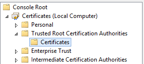- Expand the tree to the Trusted Root Certification Authority.