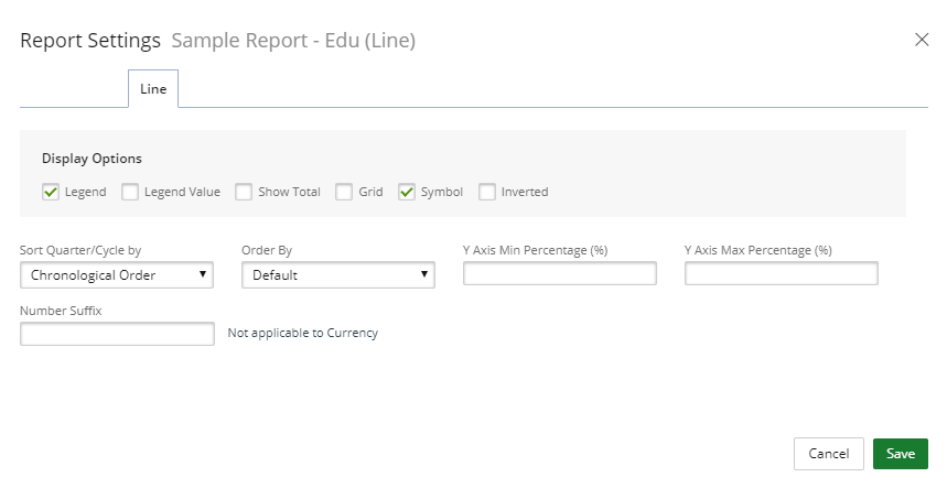 - Number Suffix: Type a number or text value to append front of the vertical numeric values on the graph.