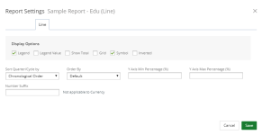 - Symbol: Select one of the following to display the default symbols from the lines in the graph:
