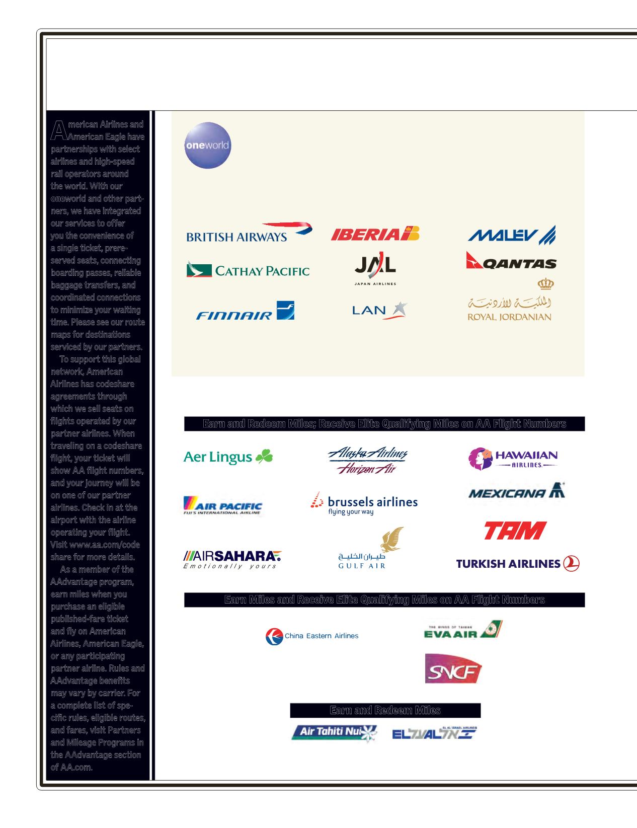 Government restrictionsmay affect the ability to earn and redeemmiles to/from certain countries. Visitwww.aa.com/aadvantage for details.