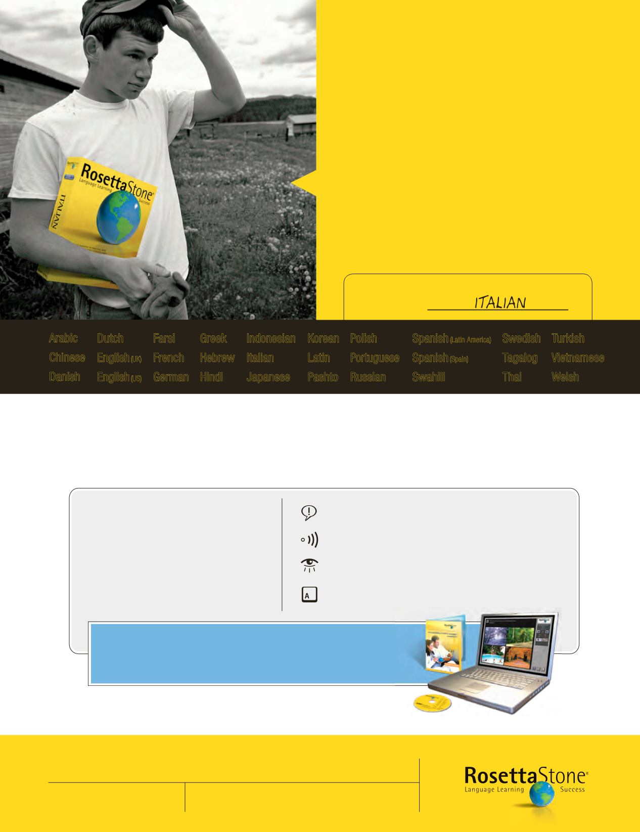 ever imagine. Rosetta Stone interactive software teaches you any of 30 languages, all without translation, memorization,