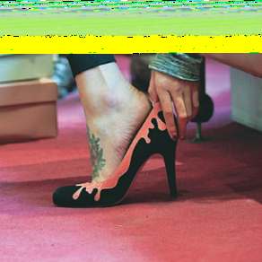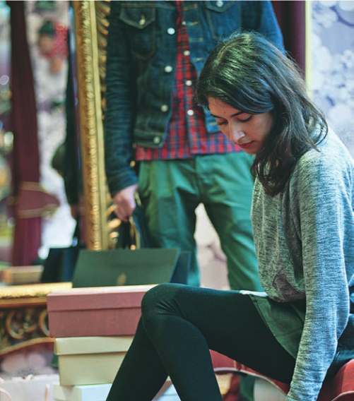 bookshop Magma; trying on shoes in