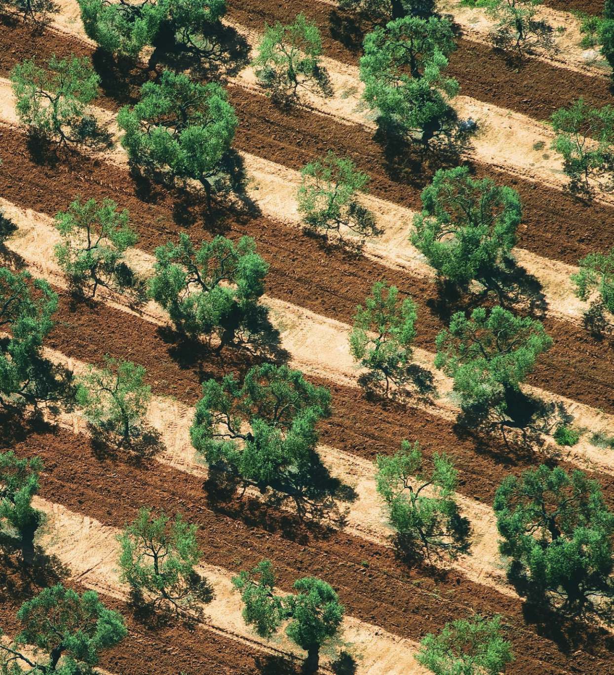 revealed spectacular geometric patterns and breathtaking beauty. Shown here are rows of olive trees in Spain.