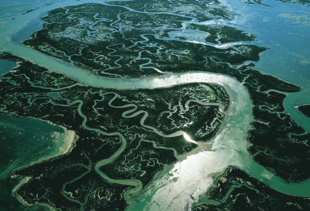 einem großen Teil aus Inseln, Watt- und Marschland. Der nördliche Teil der Lagune ist von Ebbe und Flut