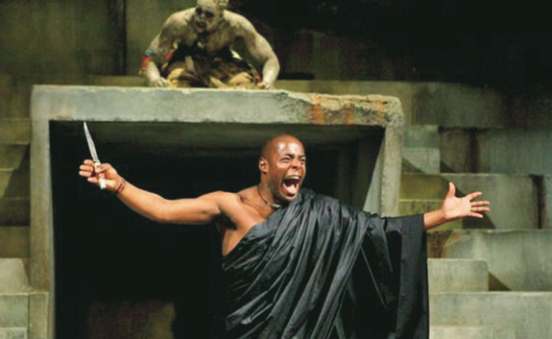 advisers, including his closest ally, Brutus, in a stadiumwhere