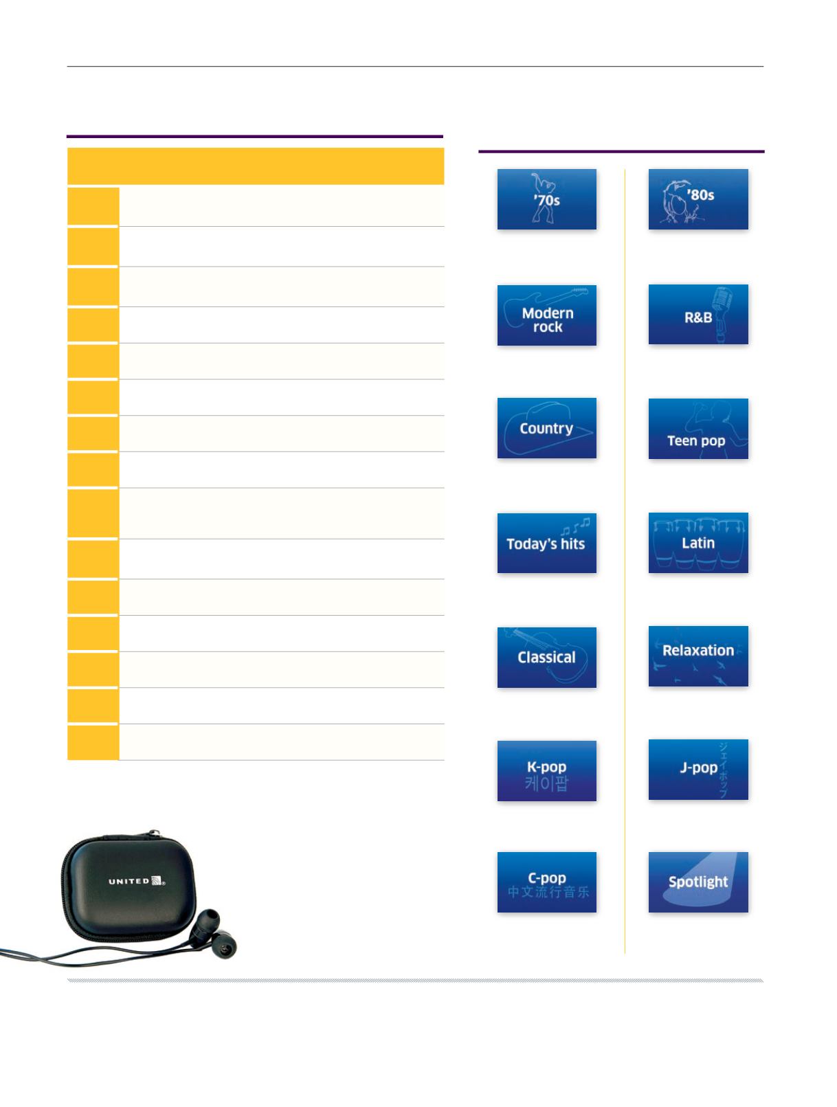 Listen for your flight number tohear live communicationbetween the flight deck andFAA air traffic control. This feature, unique toUnited,maynot be