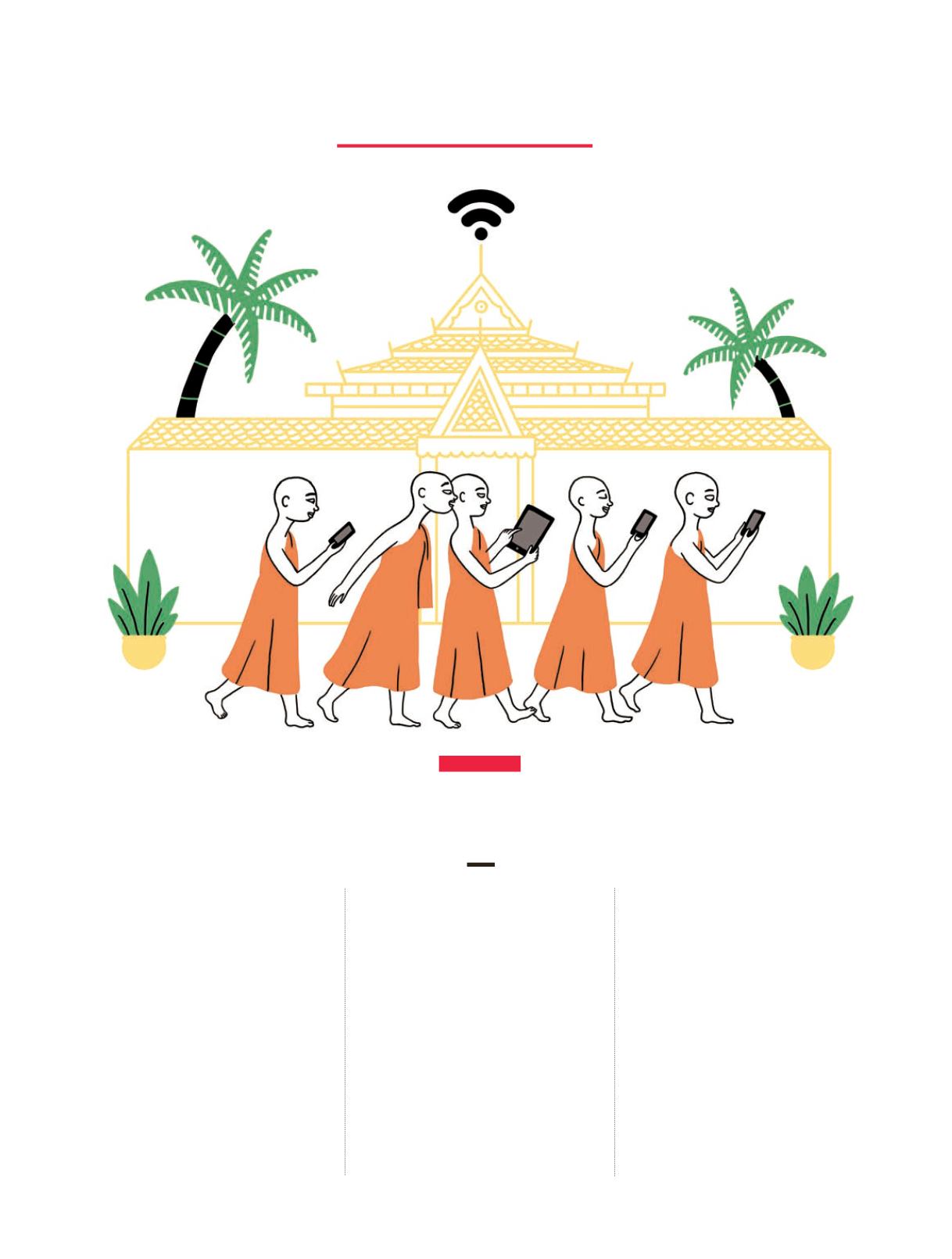 in saffron robes, who are gathered