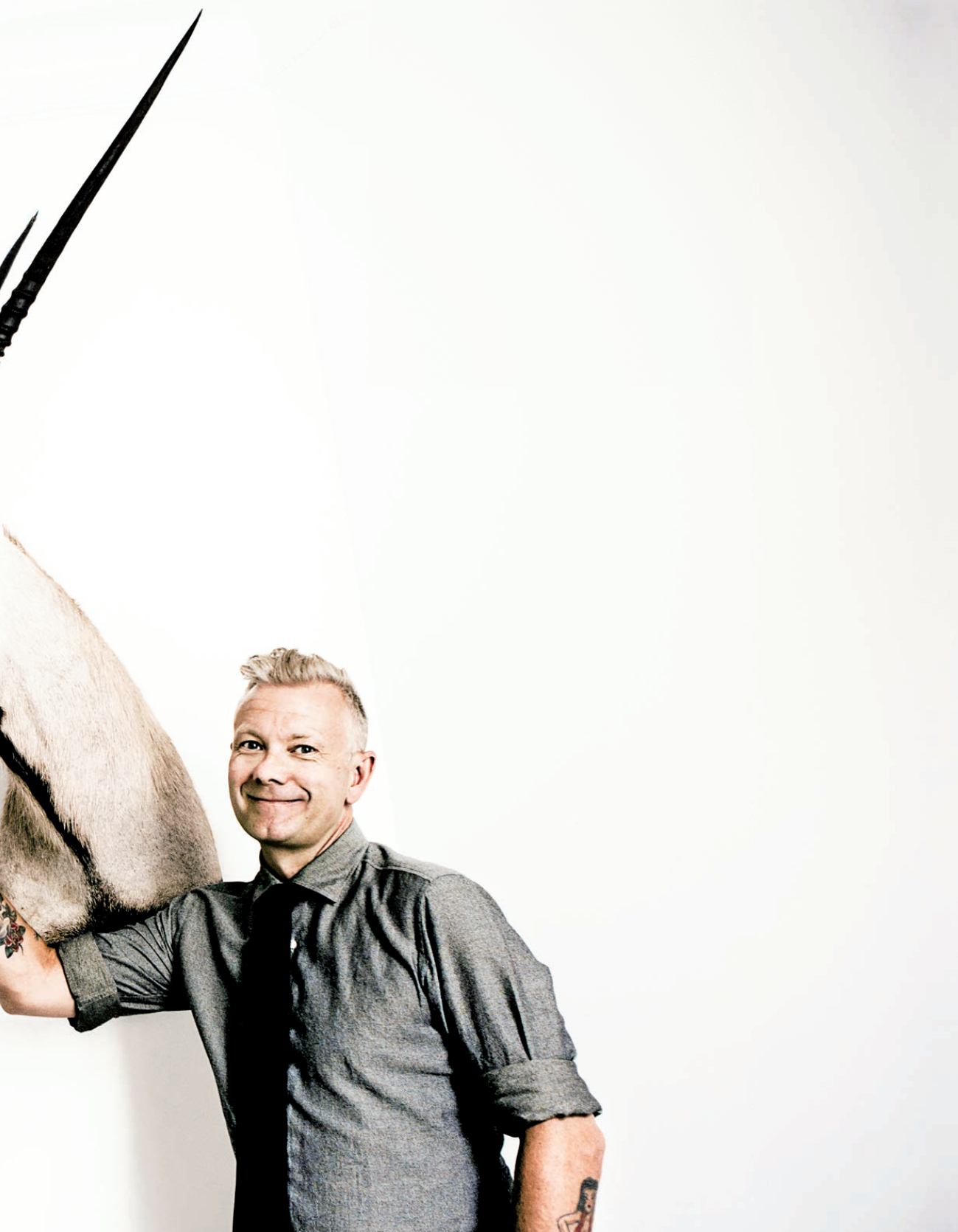 his tattooed, tie-wearing colleague –