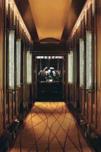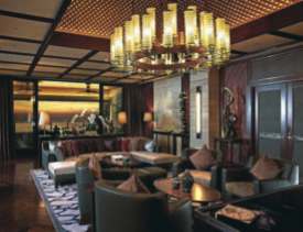 of-pearl inlaid doors, capiz lighting fixtures, custom leather wall paneling and grand sculptures