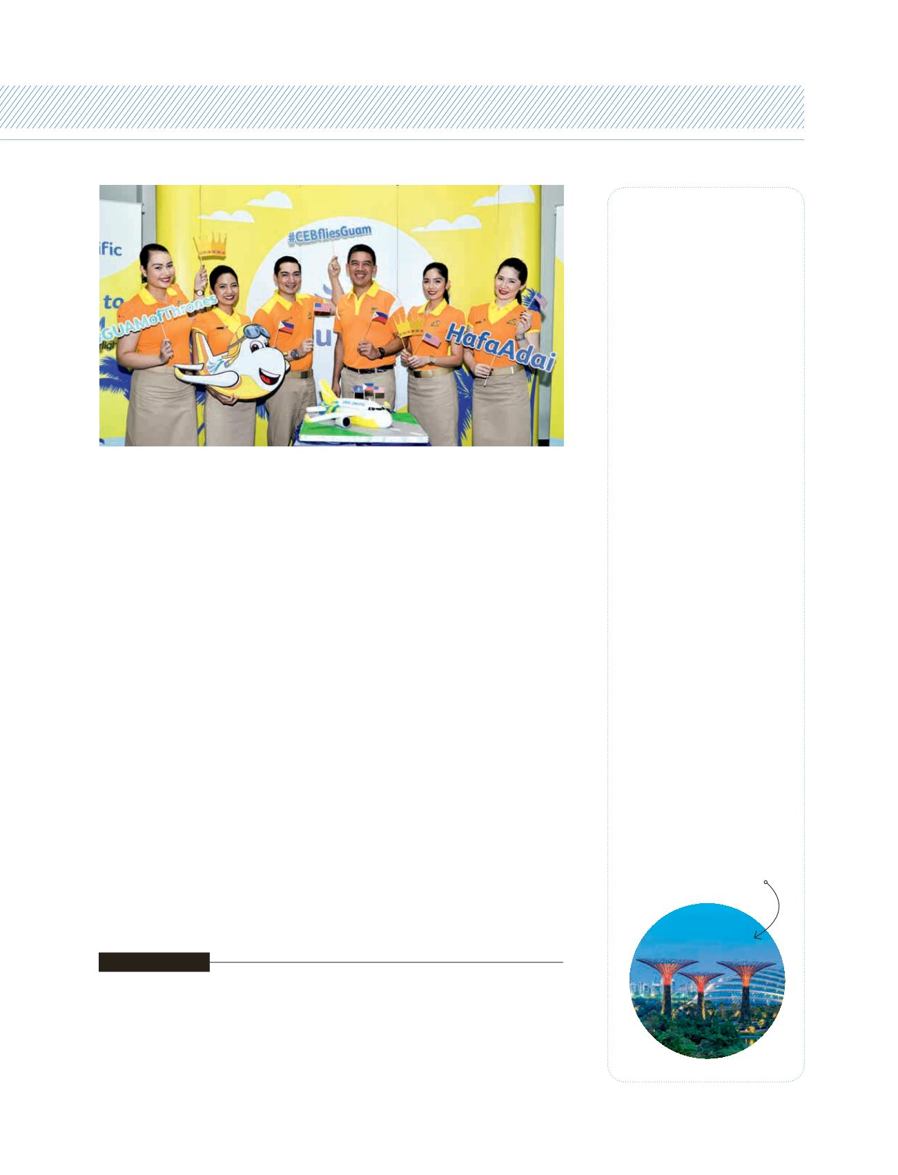 CEBGeneralManager for theLongHaulDivisionAlexReyes flankedbycrewat the launchof theManila—Guam flights