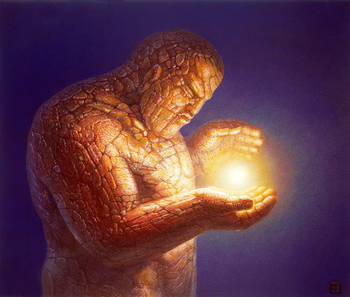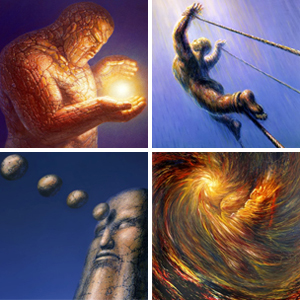 Integral Life presented this past September the first of two galleries devoted to the work of one of today's great living visionary artists: De Es. While that gallery highlighted pictures disclosing the orders and forces of manifestation, this month's offering focuses on artworks pondering the mystery and glory of being human.