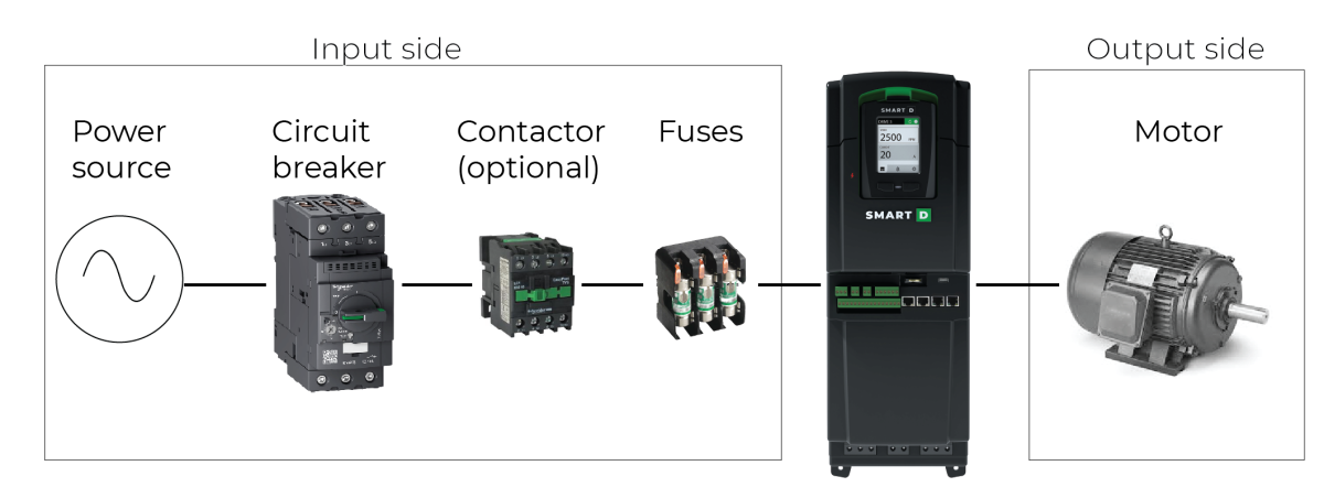 The diagram below shows the basic system configuration. Refer to this diagram when connecting the Clean Power VFD within the overall system.