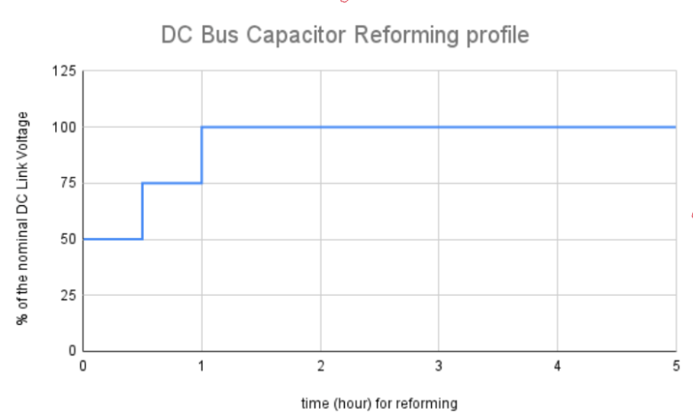 If the Clean Power VFD has been non-operational for more than one year, Electrolytic DC capacitors of the DC bus need to be reformed.