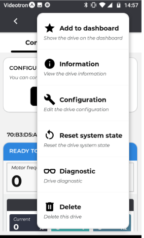 From the connected Clean Power VFD dashboard screen, select Menu.