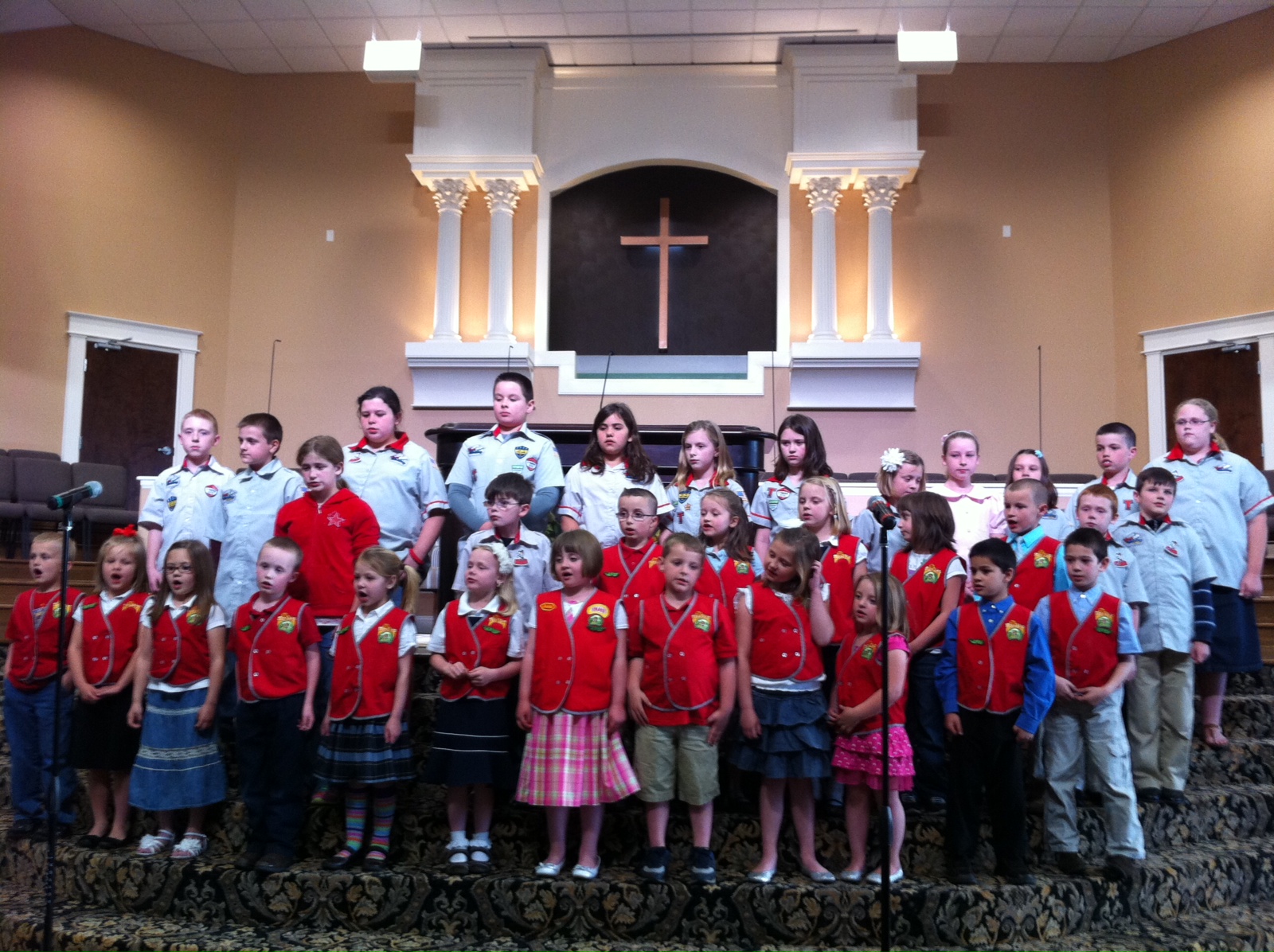 Council Time: The whole club gathers for a Bible message, singing, and announcements of upcoming events. One highlight of Council Time is the presentation of awards for individual handbook progress and team competition.
