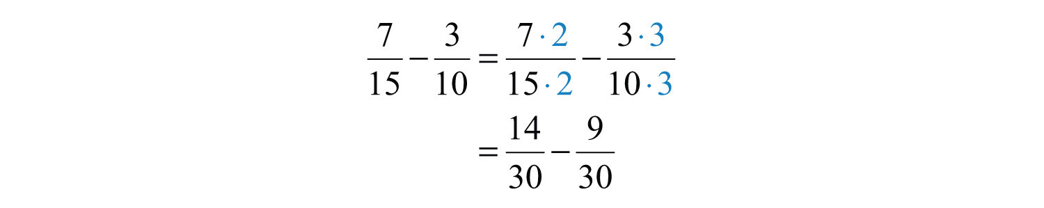 Solution: The two fractions have a common denominator 15. Therefore, subtract the numerators and write the result over the common denominator: