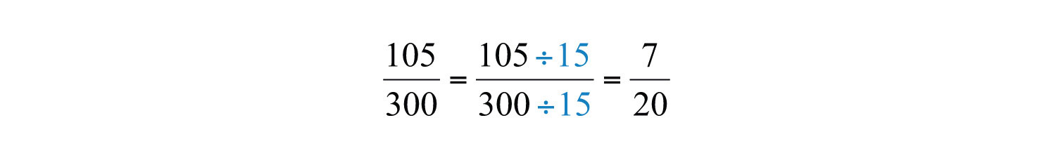 Alternatively, we achieve the same result if we divide both the numerator and denominator by the GCF(105, 300). A quick way to find the GCF of the two numbers requires us to first write each as a product of primes. The GCF is the product of all the common prime factors.