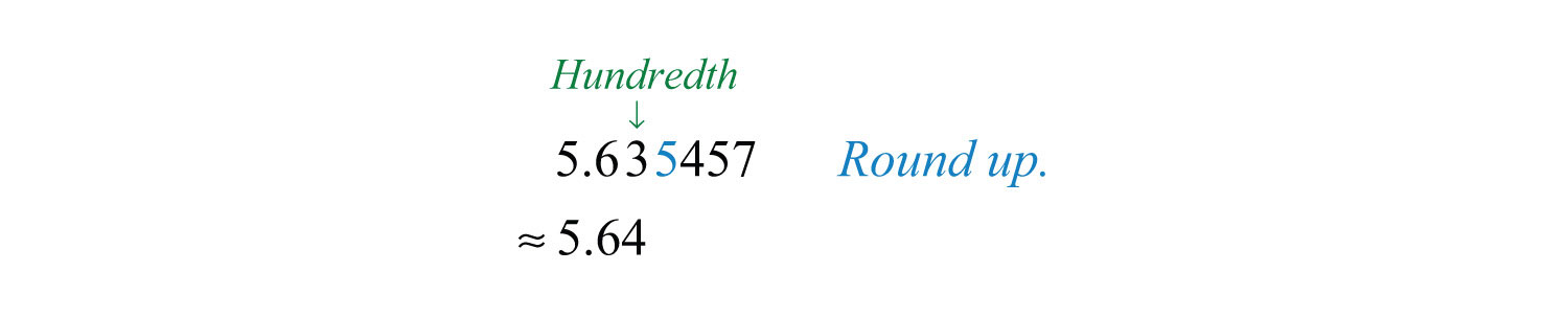 Recall that decimals with trailing zeros to the right of the decimal point can be dropped. For example, round 5.635457 to the nearest thousandth: