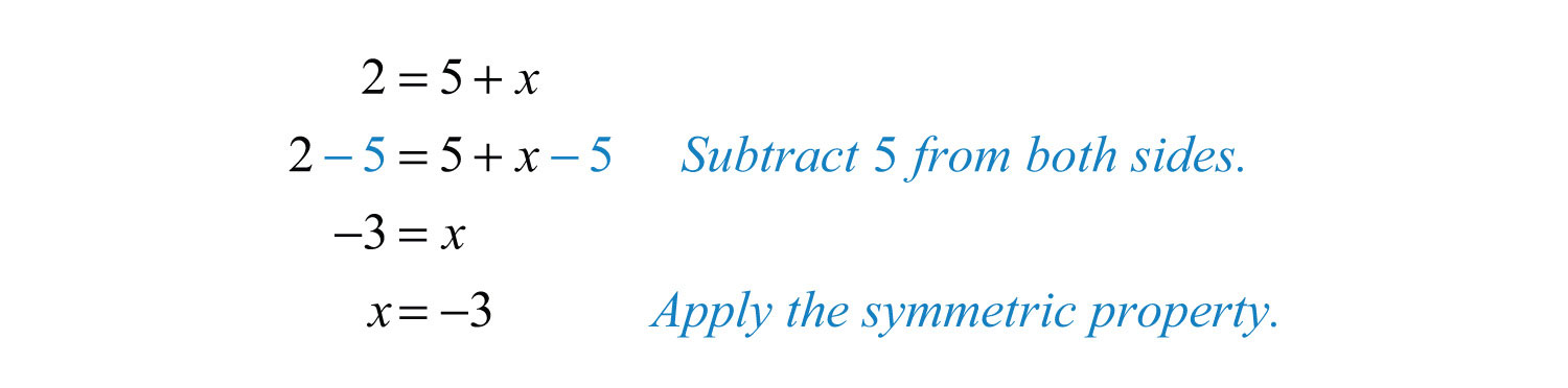 Another important property is the symmetric propertyAllows you to solve for the variable on either side of the equal sign, because is equivalent to .: for any algebraic expressions A and B,