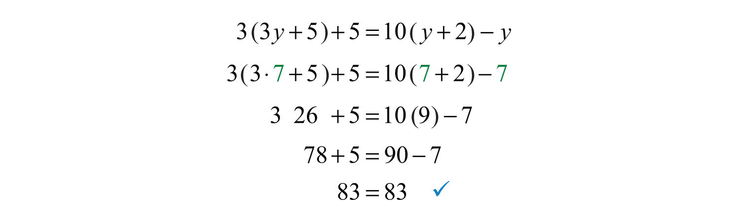 Always check to see that the solution is correct by substituting the solution back into the original equation and simplifying to see if you obtain a true statement.