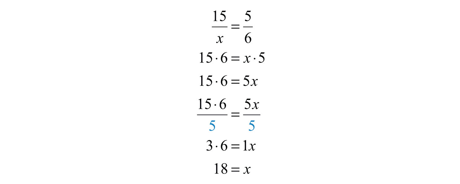 If we clear the fractions by multiplying both sides of the proportion by the product of the denominators, 8, then we obtain the following true statement: