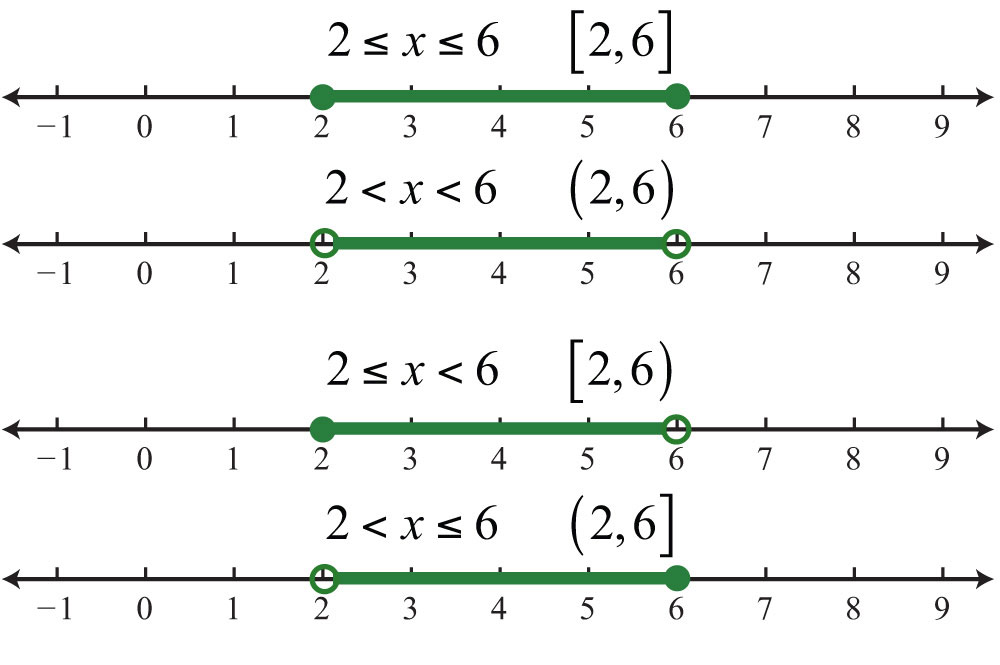 Write bounded intervals, such as , as , which is read “the set of all real numbers x such that x is greater than or equal to −1 and less than 3.”