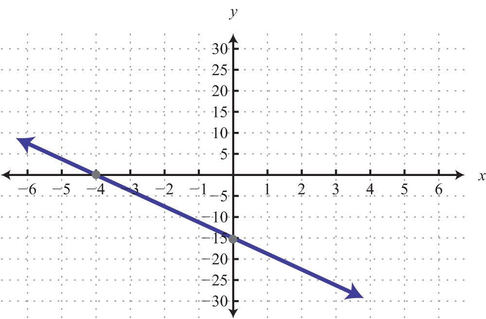 Example 7: Given the following graph, find the x- and y-intercepts: