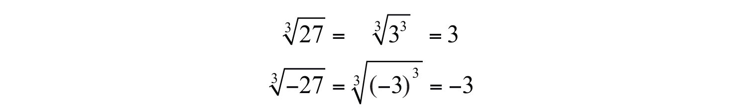 The cube rootThe number that, when used as a factor with itself three times, yields the original number; it is denoted with the symbol . of a number is that number that when multiplied by itself three times yields the original number. Furthermore, we denote a cube root using the symbol , where 3 is called the indexThe positive integer n in the notation that is used to indicate an nth root.. For example,