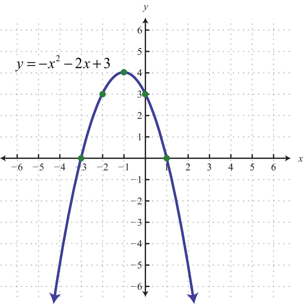 The parabola opens downward. In general, use the leading coefficient to determine whether the parabola opens upward or downward. If the leading coefficient is negative, as in the previous example, then the parabola opens downward. If the leading coefficient is positive, then the parabola opens upward.