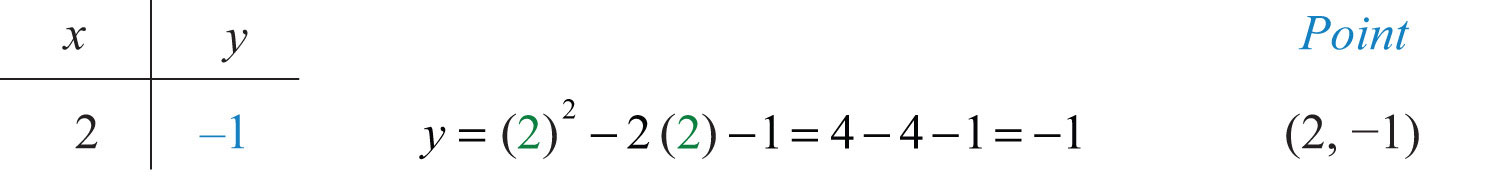 Step 4: Determine extra points so that we have at least five points to plot. In this example, one other point will suffice. Choose x = −2 and find the corresponding y-value.