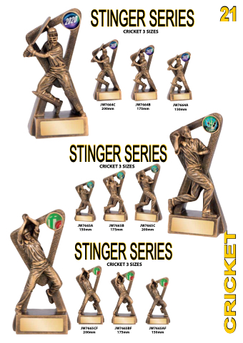 21 STINGER SERIES 21 CRICKET 3 SIZES JW7664C JW7664B 200mm 175mm STINGER SERIES CRICKET 3 SIZES JW7664A 150mm JW7665A JW7665B JW7665C 150mm 175mm 200mm STINGER SERIES CRICKET 3 SIZES JW7665CF JW7665BF JW7665AF 200mm 175mm 150mm CRICKET BASKETBALL