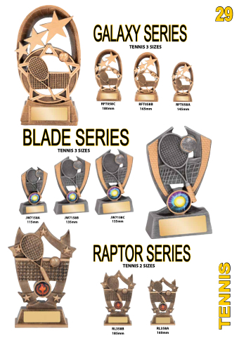 29 GALAXY SERIES TENNIS 3 SIZES BLADE SERIES RFT058C 180mm RFT058B 165mm RFT058A 145mm JW7158A 115mm JW7158B 135mm JW7158C 155mm TENNIS 3 SIZES RAPTOR SERIES TENNIS 2 SIZES RL358B RL358A 185mm 160mm TENNIS