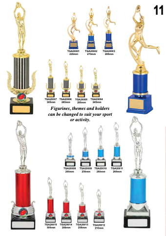 Figurines, themes and holders can be changed to suit your sport or activity.