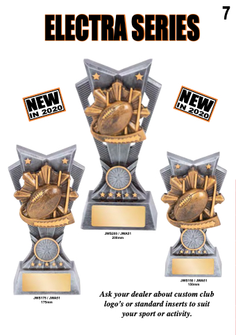 ELECTRA SERIES 7 JWS175 / JWA51 175mm Ask your dealer about custom club logo’s or standard inserts to suit your sport or activity. JWS200 / JWA51 200mm JWS150 / JWA51 150mm NEW IN 2020 NEW IN 2020