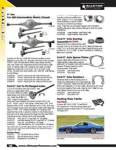 ALL68757 ..... Ford 9" Housing Kit 60" Without GM Mounts retain the axle/bearing into large bearing