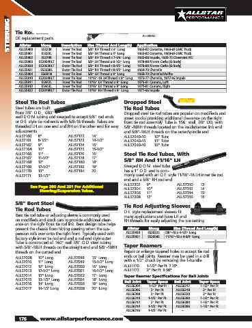 ALL57166 ..... 11" ALL57176 ...... 16" Steel Tie Rod Tubes, With