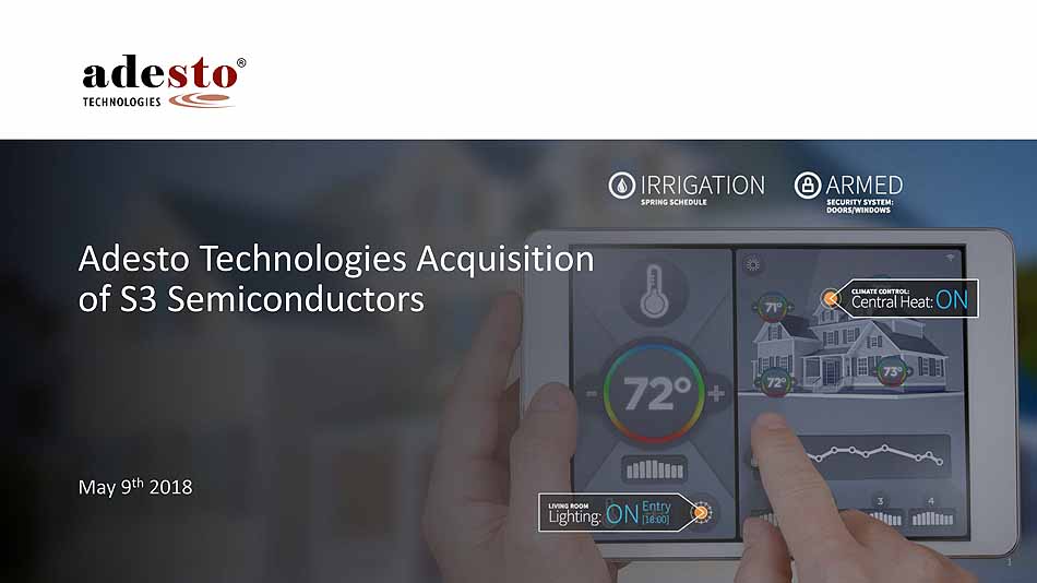 1 May 9 th 2018 Adesto Technologies Acquisition of S3 Semiconductors