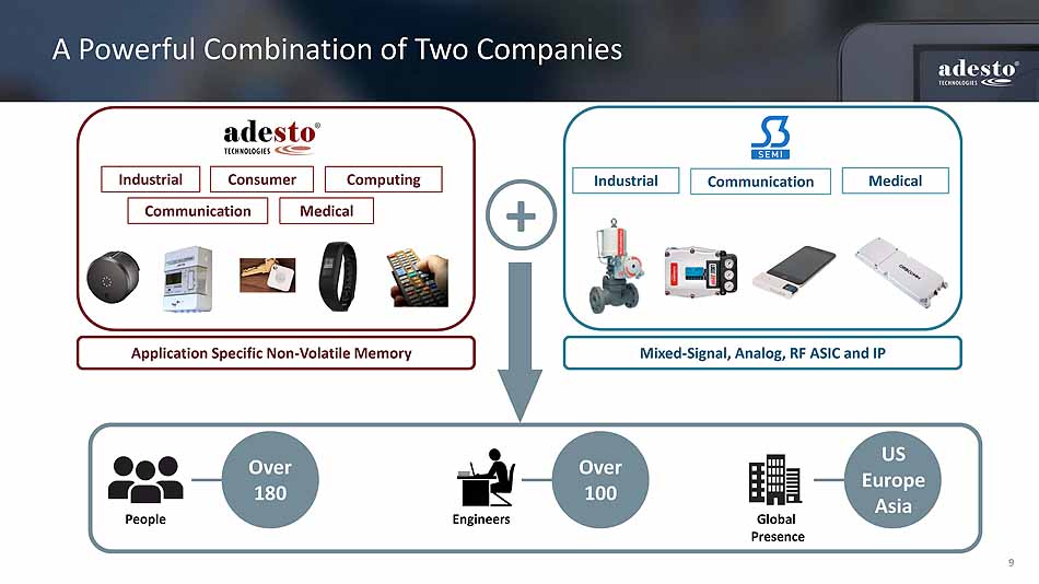 8 Customer Synergies Driving Growth Targeted ASIC Opportunities with Adesto’s Industrial Customers Increasing ASIC Opportunities in S3Semi Pipeline Greenfield Opportunities in Asia for S3Semi Solutions China Japan Adesto’s Industrial Customers in China, Japan Broader Product Portfolio Across Respective Channels ASIC Analog IP Mixed Signal IP App Specific Non - Volatile Memories Representative target customers Current Adesto Customers