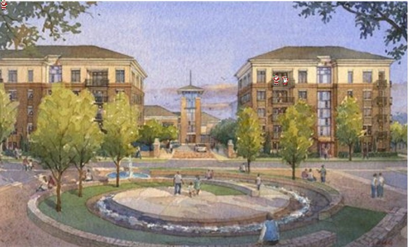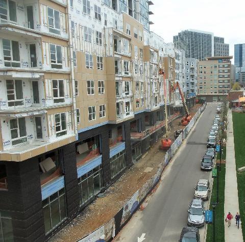 "supervising" construction of new apartment/retail buildings (below), attending