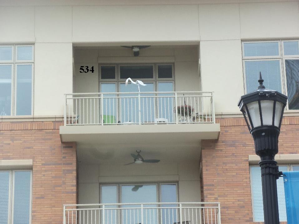 After vacation at the beach, an ornamental egret flew to our new porch. We were delighted.