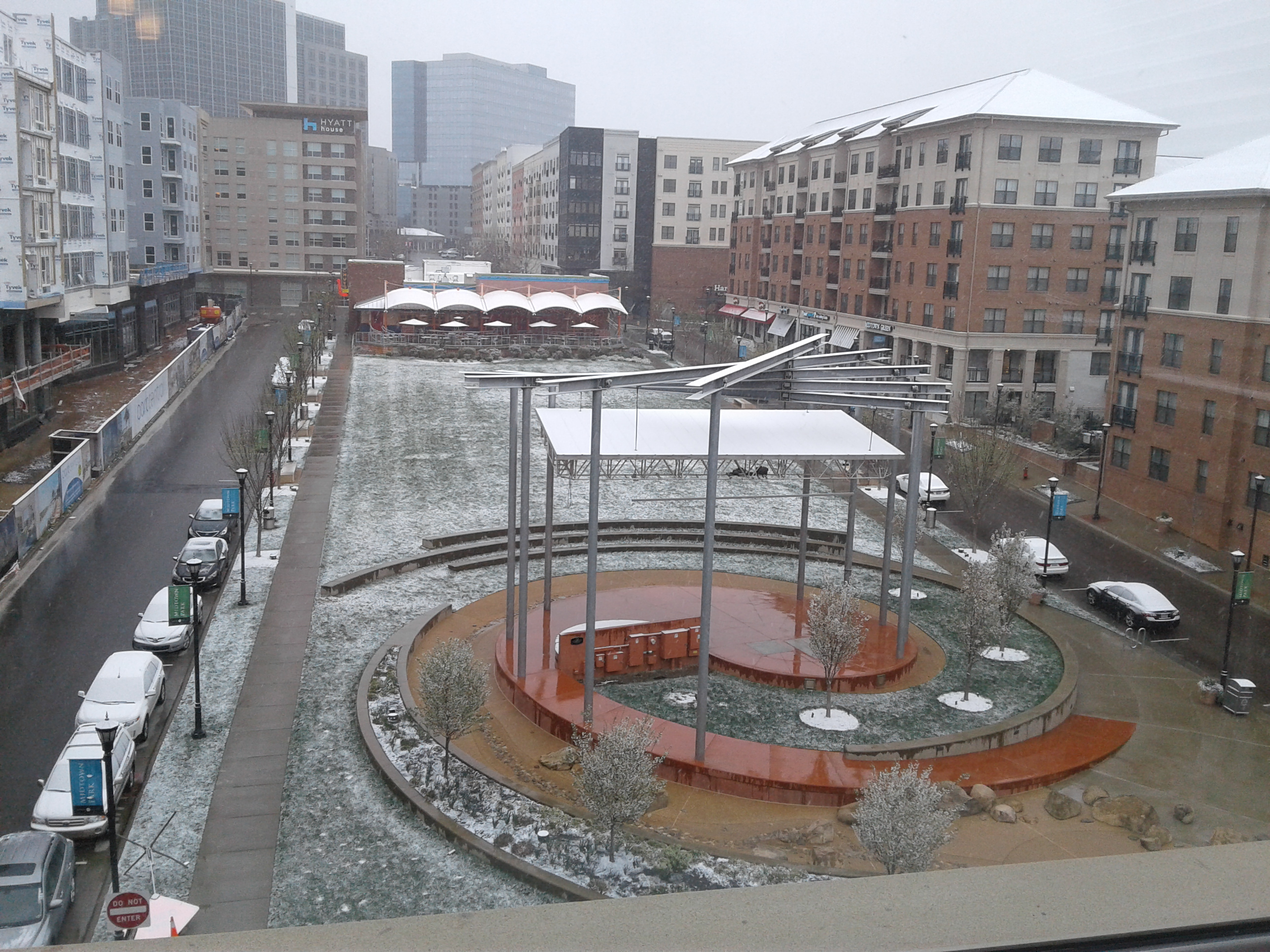 We hung out our flag and staked our claim: ...from there saw our very first "snowfall" of the year. This was it, at its height!