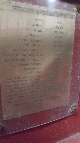 80,000lb Bristol Riggers Special Forklift For Sale Used