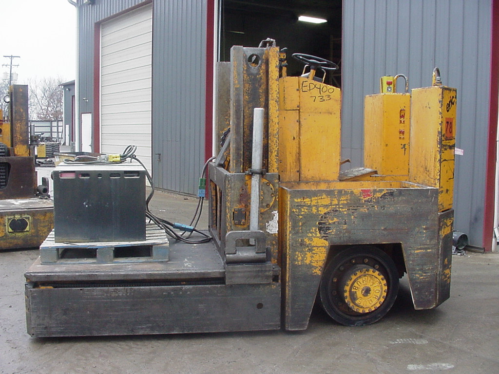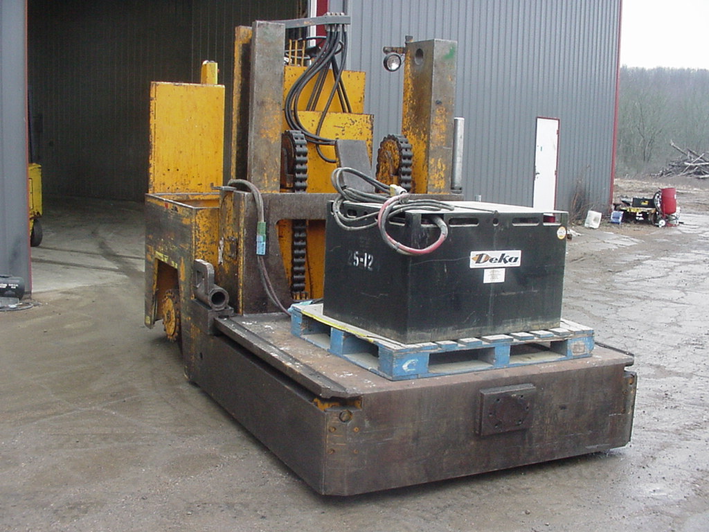 Used Erickson Die Handler – Die Truck For Sale, 40,000lb Capacity @ 40″ Load Center, the table is 60″ Long x 72″ Wide, table lowered is 21″ and lifts 50″, overall length is 150″, 72 volts, good batteries and chargers