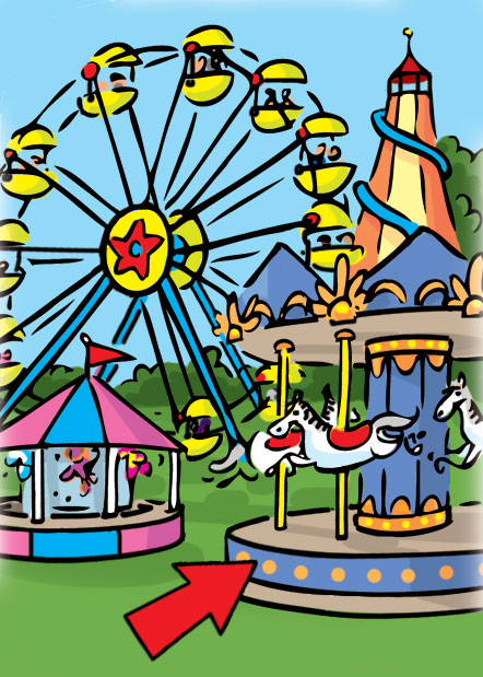 The most popular type of animals on the merry-go-round are horses. They are connected to a pole that goes round and round and up and down!