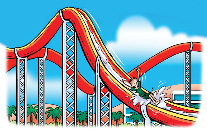The tallest water slide in the world is in a water park in Brazil. It is almost 50 meters tall, and you slide down it at more than 90 kilometers per hour!