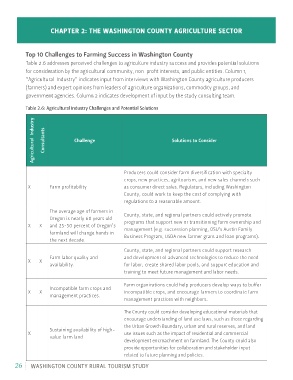 Table 2.6 addresses perceived challenges to agriculture industry success and provides potential solutions